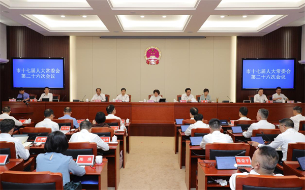 8月27日,市十七届人大常委会举行第二十六次会议。市人大常委会主任白云萍主持第一次全体会议。 常委会组成人员43人出席会议,出席人数符合法定人数。