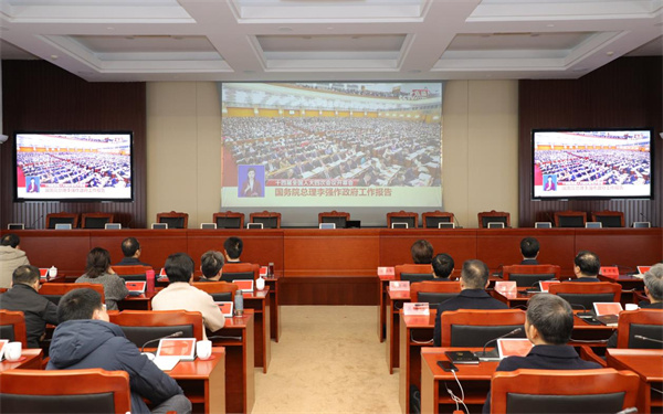 3月5日上午,十四届全国人大四次会议在北京人民大会堂开幕。市人大常委会组织全体机关干部集中收看开幕会现场直播,聆听国务院总理李强所作的政府工作报告。市人大常委会主任白云萍,副主任叶明华、周庆和秘书长庄小涛参加收看。