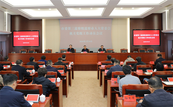 根据市委关于巡察工作的统一部署,2026年3月24日,市委第三巡察组巡察市人大常委会机关党组工作动员会召开。市委第三巡察组组长芮卫东作动员讲话,对深入学习贯彻习近平总书记关于巡视工作的重要论述,扎实开展巡察工作提出要求。市人大常委会秘书长、机关党组书记庄小涛主持会议并作表态发言。