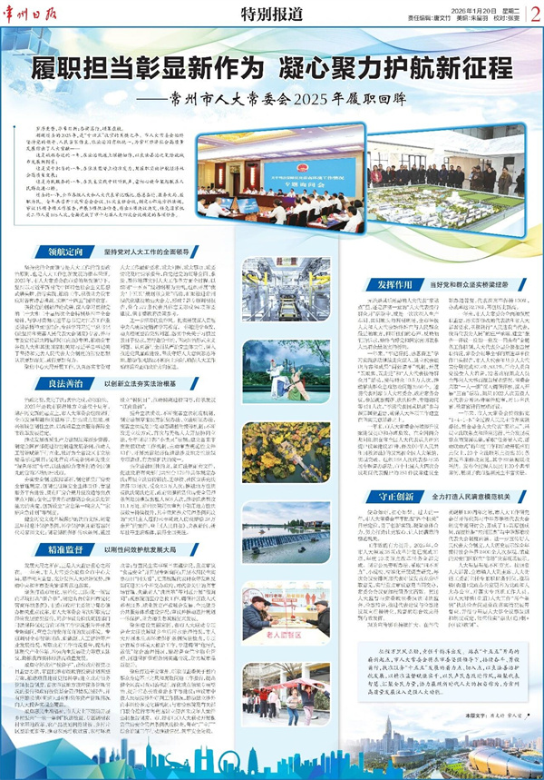 征程万里风正劲,重任千钧再出发。站在 “十五五” 开局的崭新起点,市人大常委会将在市委坚强领导下,接续奋斗、勇毅前行,找准服务“十五五”发展的着力点、切入点,以良法善治护航发展,以精准监督赋能实干,以民声民意校准航向,凝聚代表智慧、汇聚全民力量,以过硬成果展现新时代人大的担当作为,为常州高质量发展注入更强人大动能。